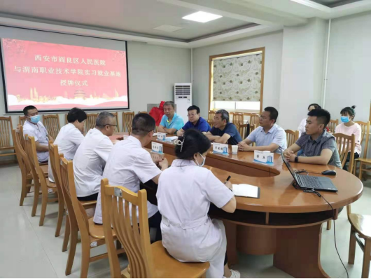 阎良区人民医院经理惠增龙为渭职院一行介绍了医院的发展历程、现状、规划等,他表示,希望双方以此次建立实习就业基地为切入点,借助阎良区人民医院在医疗服务实践工作中的独特优势,总结和提炼医疗教学模式与人才培养,与bst365官方网站强强联合,不断拓展和深化双方在科学研究、人才培养输送等方面的合作内容,助力bst365官方网站医学类的团队建设、人才培养和生源就业,最终实现双方共赢。