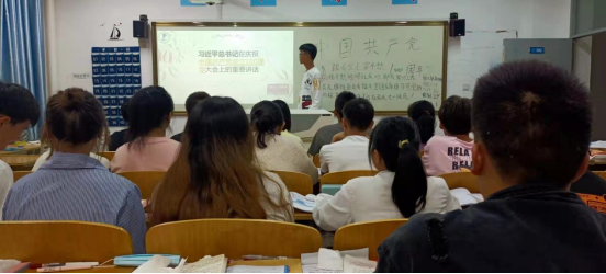 各班团课形式多样,内容丰富。活动开展前各班团支书积极准备,活动中同学们认真学习,踊跃参与,做好笔记,还一起分享身边的感人事迹和祖国繁荣带来的生活变化,活动最后各班同学进行归纳总结,写了书面材料。