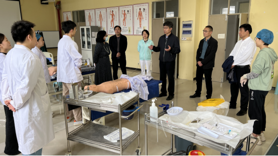 靳华锋董事长一行依次视察了中药传统技能大赛、临床技能大赛和康复技能大赛的备赛现场,细心询问了各项工作的准备情况,认真检查了训练设备和赛场的准备工作,同时还与参赛选手和指导教师亲切交流,对集训师生的努力付出和bst365对备赛工作的周到安排给予充分肯定,勉励大家发扬吃苦耐劳精神、树立坚定信心、潜心刻苦训练,不断提升综合素质和技能水平,争取在比赛中取得优异成绩。