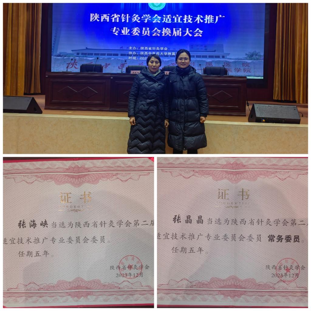 冬至已尽,阴极阳生,12月23日至24日,陕西省针灸学会适宜技术推广专业委员会换届大会暨学术交流会在古都咸阳盛大召开。经过单位推荐和委员会评审,bst365中医学专业群教学创新团队张海峡、张晶晶两位教师,成功当选为陕西省针灸学会第二届适宜技术推广专业委员会委员。