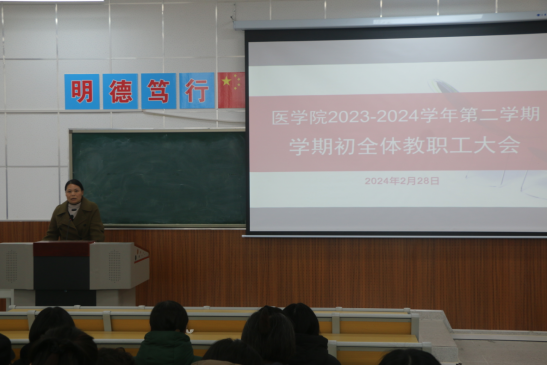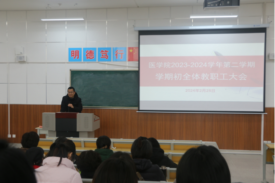2月28日下午,bst365在综合楼305教室召开了2023-2024学年第二学期全体教职工大会。此次会议由党总支书记张儒主持,bst365全体教职工参会。