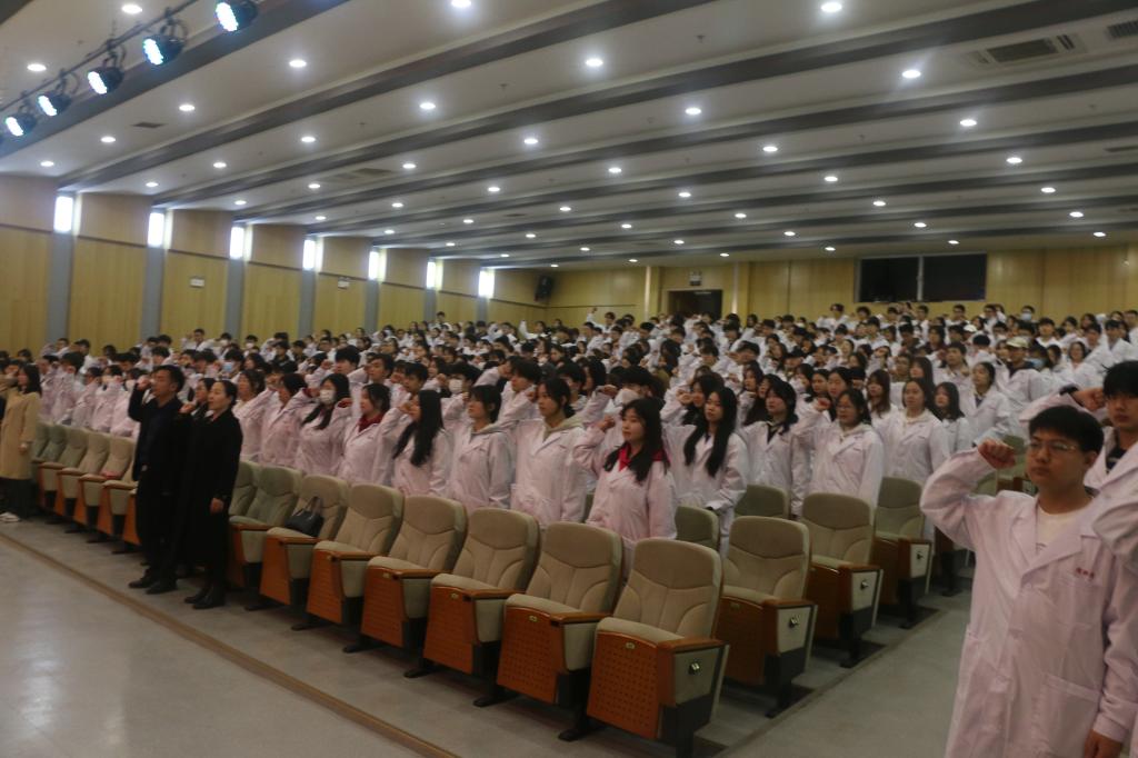在领誓人bst365青年教师田宾琦老师的带领下,同学们高举右手,庄严宣誓,在铿锵有力的誓言中,同学们表达了献身医学、热爱祖国、忠于人民、恪守医德的决心,以及为除人类之病痛、助健康之完美、维护医术圣洁和荣誉而努力奋斗的坚定信念。