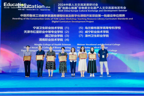 在2024 中欧人文交流发展研讨会暨“丝路心相通”非物质文化遗产人文交流基地发布会上,公司被授予中医药鲁班工坊教学资源库课程标准及数字化课程开发项目立项建设单位、世界技能发展联盟会员单位。
