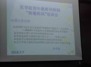 党少平经理解读了经典“师、德”内涵,为青年教师的成长,指出了合理可行的建议。他希望各位老师要做学习的楷模,不断提升,凝练思想,传递正能量,要求青年教师要不断提高自身素质素养,各位导师要力争成为医术、知识、精神、师德、爱的大师。