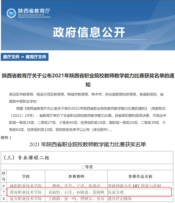 2021年陕西省职业院校教师教学能力比赛现场决赛于9月17日在杨凌职业技术公司举行。决赛由陕西省教育厅主办,陕西省教育科学研究院、杨凌职业技术公司承办。本次决赛共有来自全省23所高职公司73件作品参赛, 比赛为团体赛。