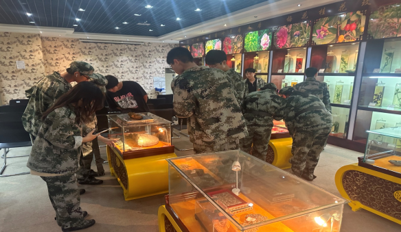 (军训新生参观中药标本馆)