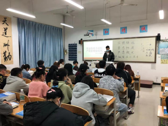 活动开展前各班积极准备,以PPT、板报、视频的形式,确保活动有序进行。会上,各位辅导员首先总结了开学以来班级的表现情况、存在问题,带领同学们学习了《关于开展“常态防疫不放松,严格管理促校风”评比竞赛活动的通知》。要求疫情期间,防范意识不能松懈,员工非必要不得出校,避免到人群聚集尤其是空气流动性差的场所;注意戴口罩、勤洗手、按时测体温;宿舍、教室每日清扫、消毒、通风,保持良好的环境和个人卫生;上课期间手机入袋,不能随意外出;规范考勤制度,杜绝迟到早退现象;加强班风建设,完善班级管理制度,提倡班干部起模范带头作用;规范个人言行,争做文明理念的践行者……真正形成“树校风、促学风、正班风”的良好风尚。