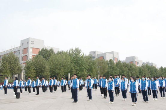 比赛场上,20级各班同学身着校服,呈现出崭新容貌和青春活力,展现了他们振奋人心的精神面貌。