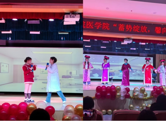 晚会在主持人的声声祝福中拉开了帷幕。欢快的现代舞和民族舞伴着优美的旋律在舞台上绽放;歌曲《大鱼》空灵而悠扬,给人无限遐想的空间;小品紧跟时代潮流,《咖妃驾到》《总裁就诊》诙谐幽默的表演给观众带来了欢声笑语;朗诵《医路新元,青春担当》以充沛的情感表达了医学人的拼搏努力和责任担当;医美班模特们的走秀《Poker Face》展示着冷峻而充满魅力的气场,将气氛推到高潮;蒙古舞《特斯河之赞》更是将观众们的情绪点燃,仿佛置身于大草原中;晚会在《祖国啊我亲爱的祖国!》慷慨激昂的朗诵中完美落幕。