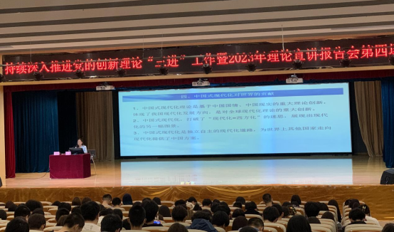 王爱教授以《如何理解中国式现代化》为题进行专题宣讲,从中国式现代化的概念、中国式现代化的探索、中国式现代化的特征、中国式现代化对世界的贡献这四个部分进行了深入的讲解,最后她表示,对于当代老员工来说,施展才干的舞台无比广阔,实现梦想的前景无比光明,希望广大青年学子在实现第二个百年奋斗目标新的赶考之路中绽放青春的绚丽之花。